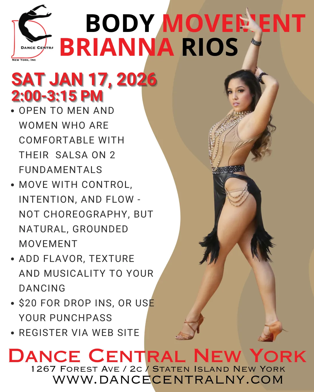 Join us for a special Salsa Body Movement workshop with Brianna Rios and learn how to add flavor, texture, and musicality to your dancing — in a way that feels natural and grounded, not forced.